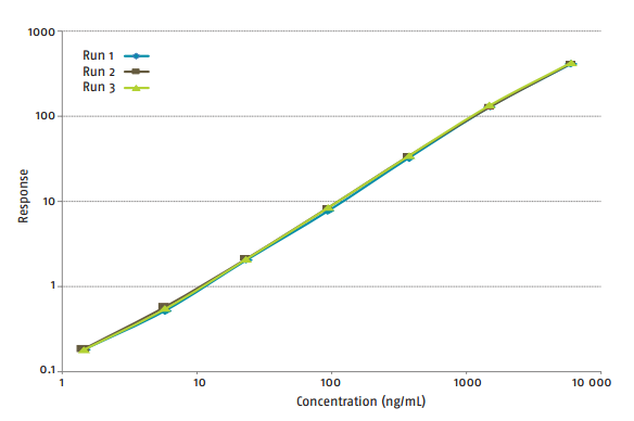 寬廣的動態范圍:將稀釋度和重復性最小化,通過 15nl 親和柱樣品捕獲反應體系,有效的提升數據動態范圍,減少基質效應。